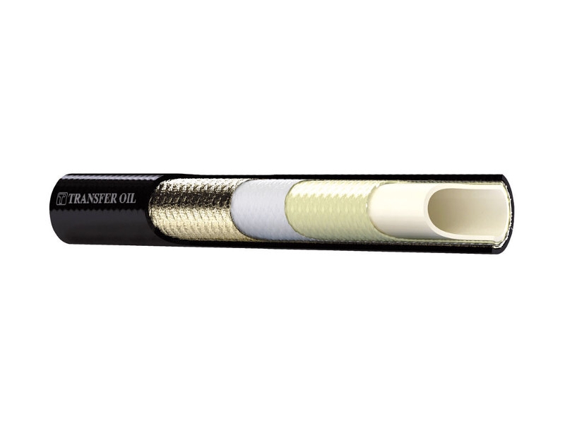 Thermoplastic hose with combined reinforcement for very high pressure hydraulic applications from 350 to 500 bar. Designed for general hydraulic applications requiring high mechanical protection properties of hose and braid combined with high pressure: